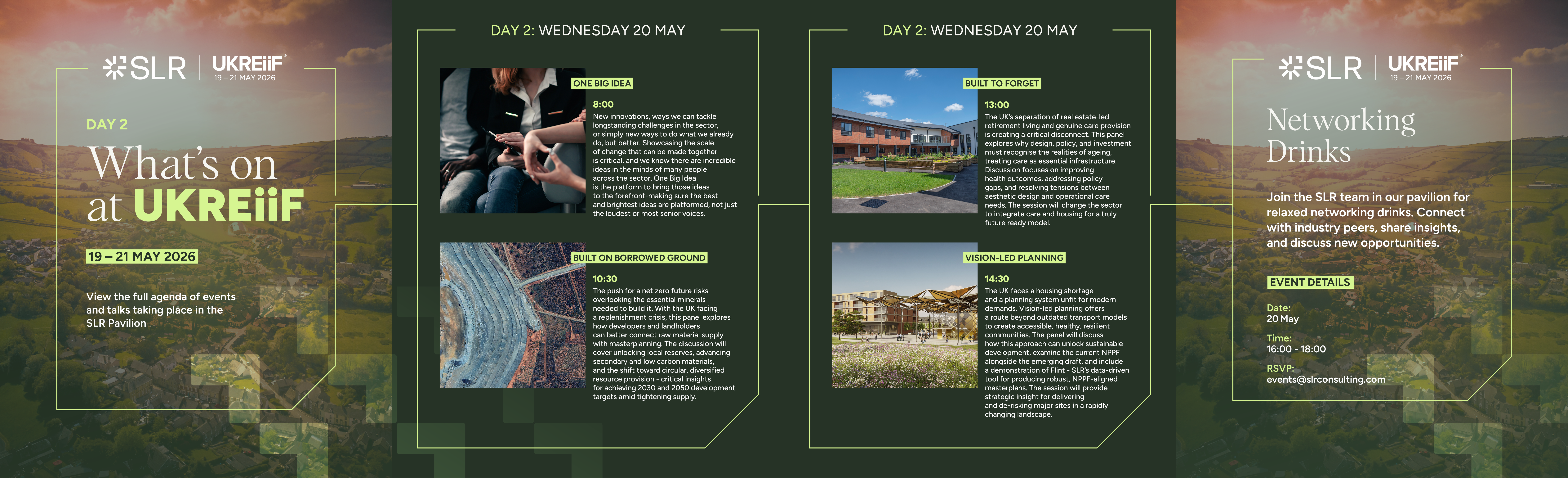 Key SLR personnel will be in Leeds throughout the three‑day event, including Rob Hounsome, Executive Director for EMEA, senior leaders from the Built Environment sector, and Regional Business Leads.
